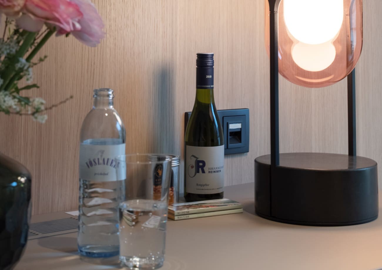 Occupancy: 1-2 persons / 25m² / Perfectly tailored to the needs of business travelers, we offer you an ideal accommodation with a quiet location in the vineyards. A spacious desk with plenty of storage space provides you with the perfect work area.