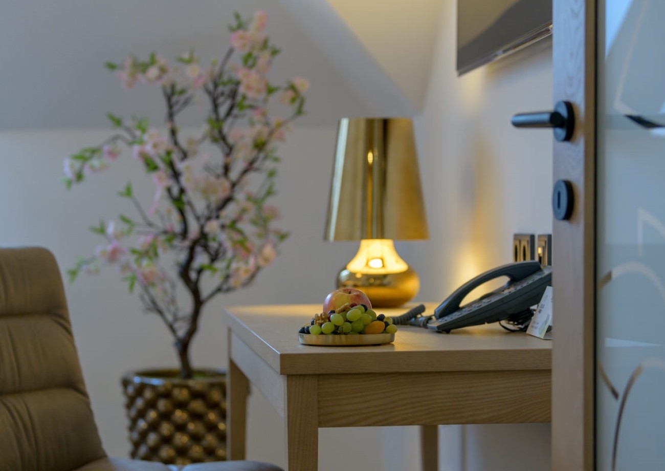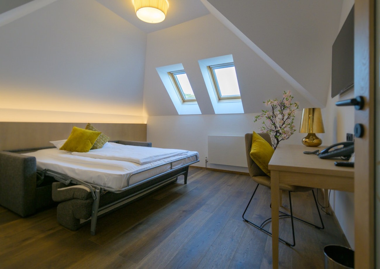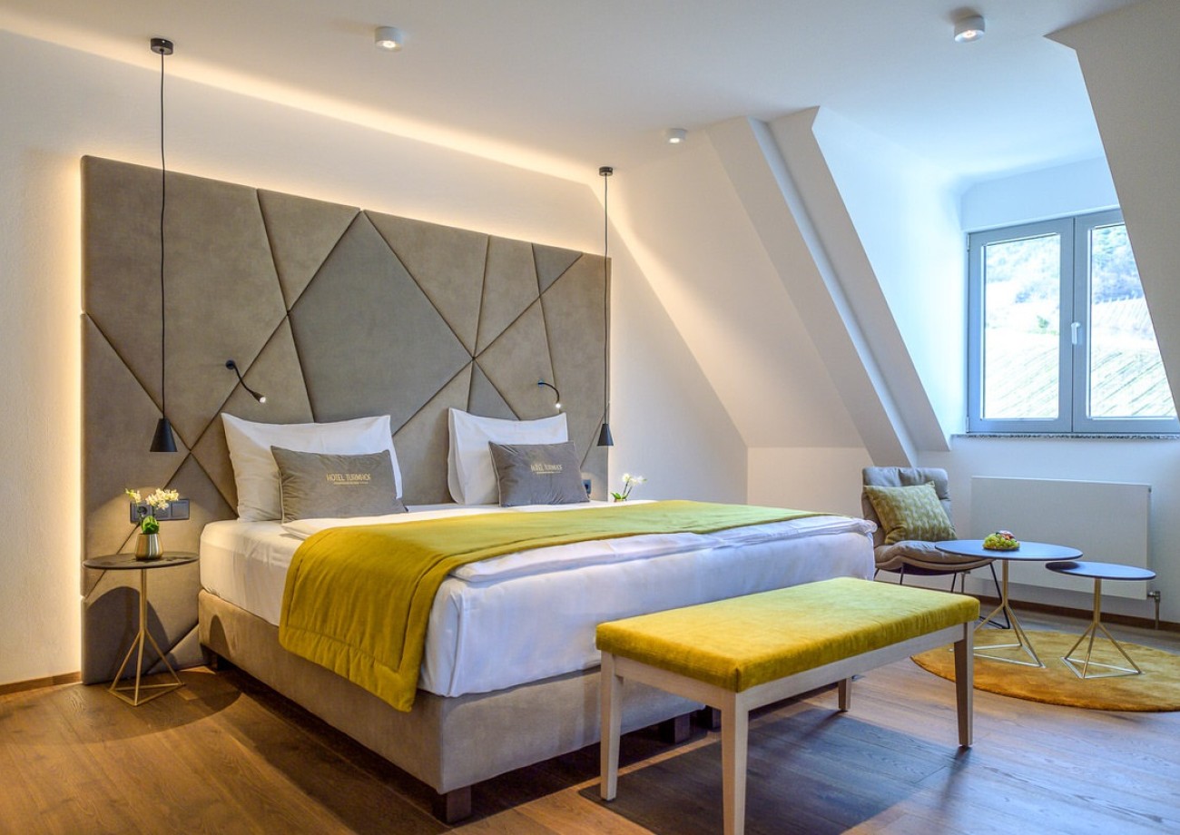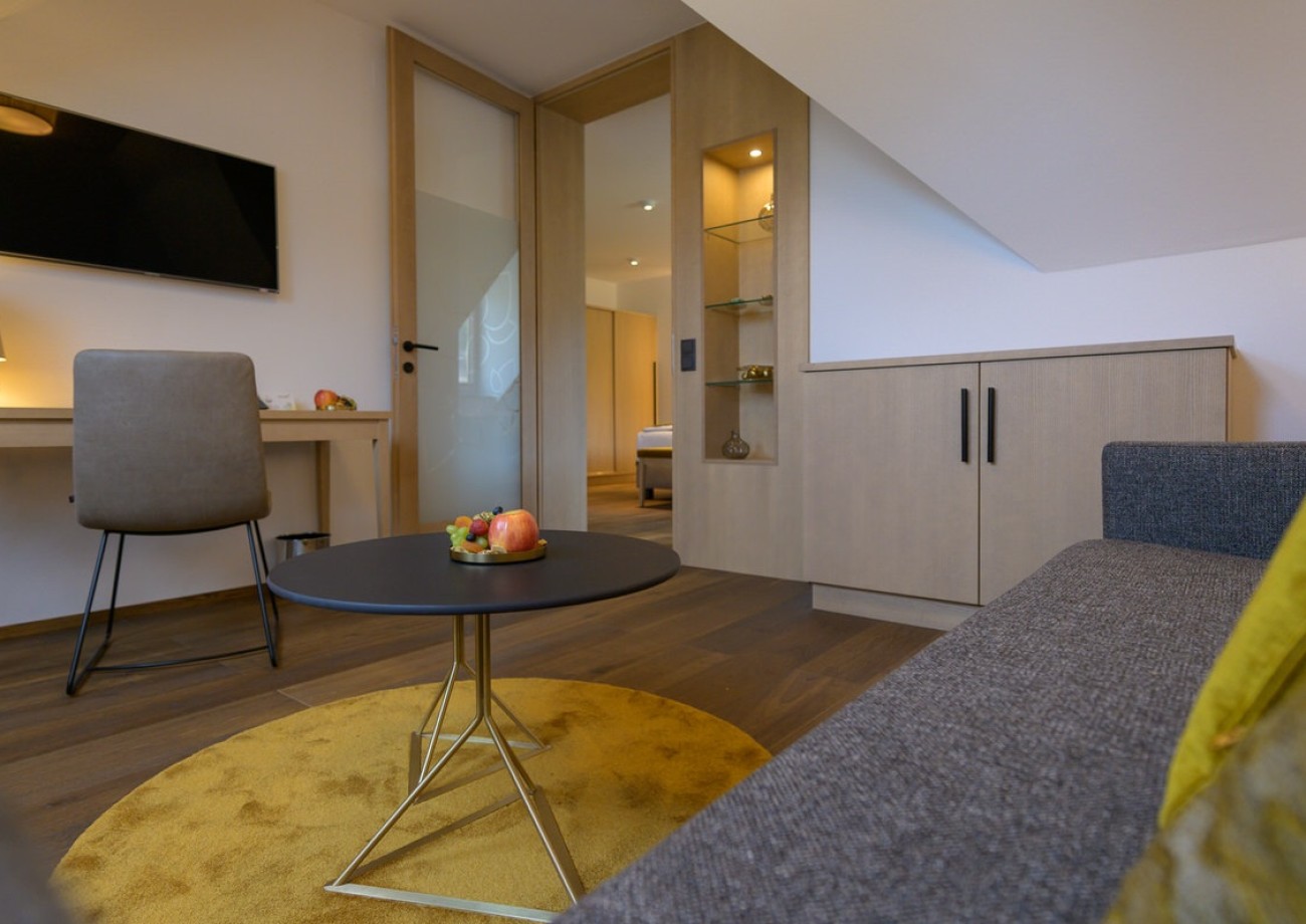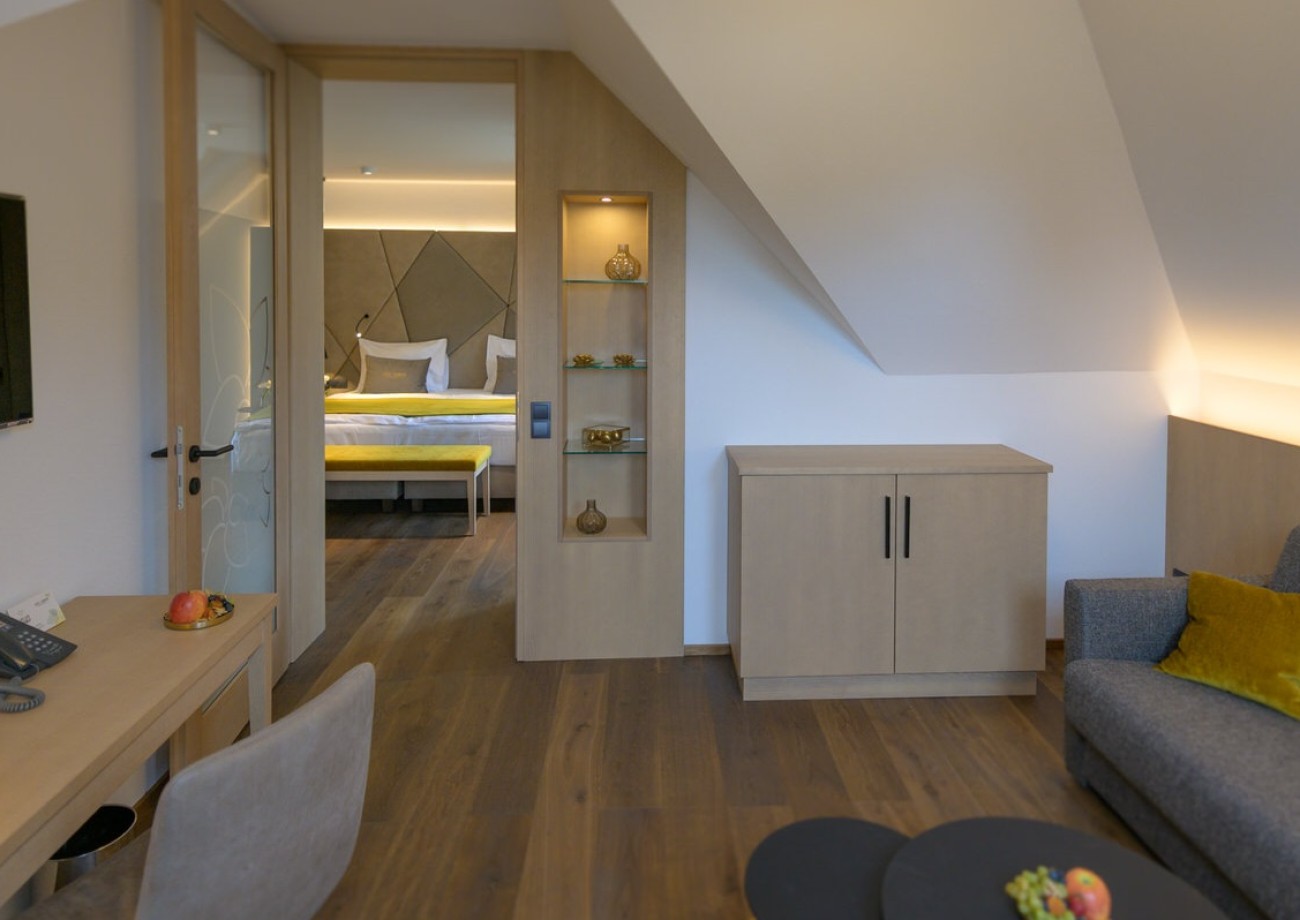 Enjoy the cozy atmosphere with a living area and a separate sleeping area. This suite offers you a quiet location with a wonderful view of the surrounding vineyards, making it ideal for families.